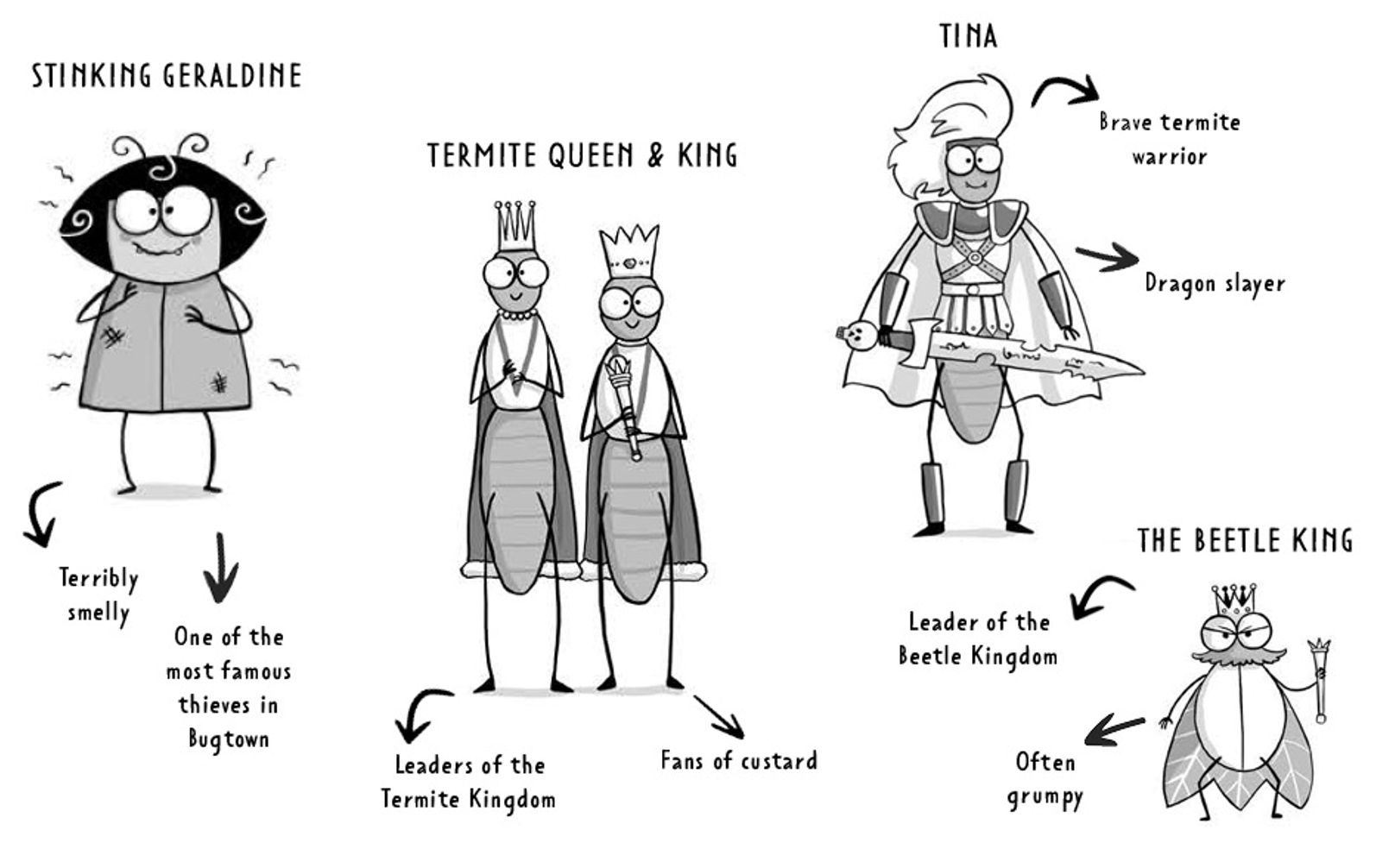 2、充满了各种滑稽有趣的角色,比如被压扁的鼻涕虫多米尼克(Dominic) 和松露先生(Mr Truffle) 。还有大量涂鸦插图——并包含一个超级有趣的“选择你自己的冒险”章节!