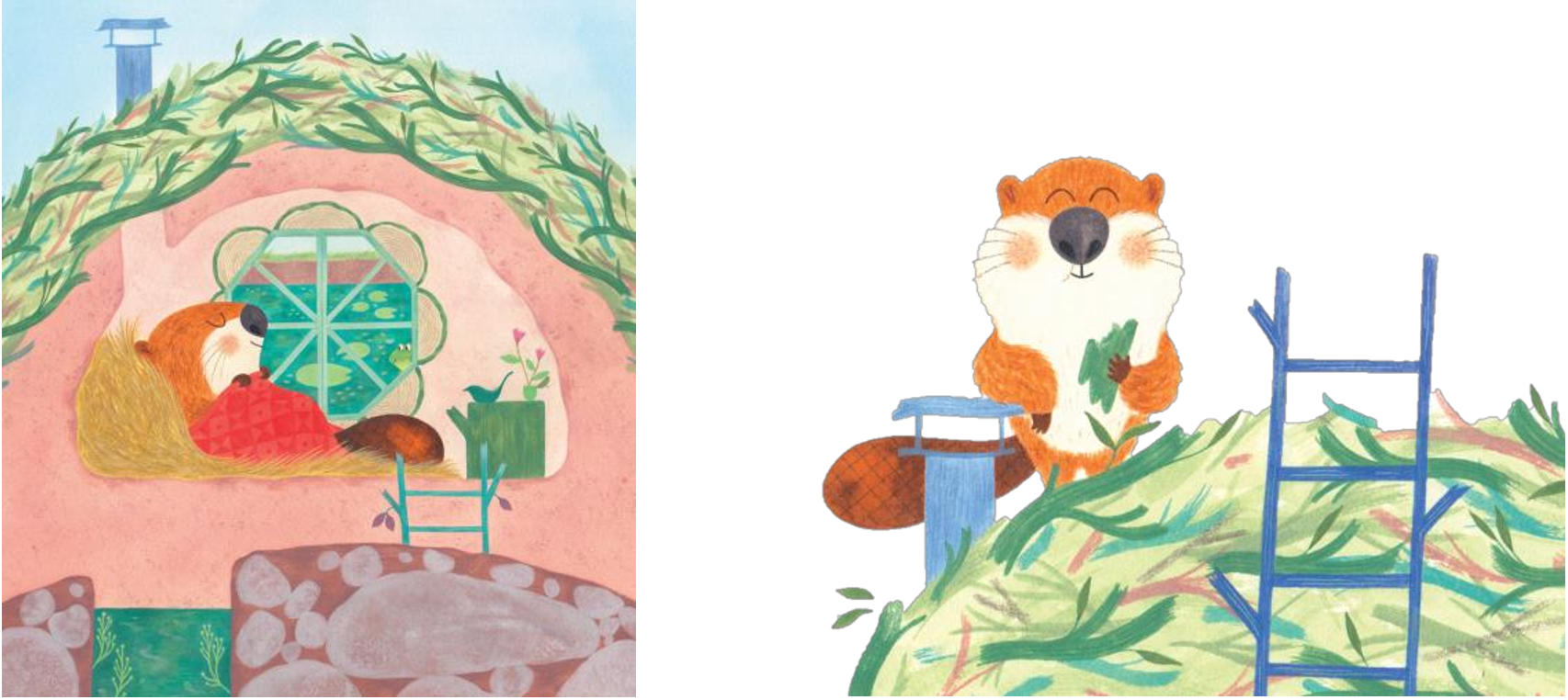 书后附有一页非虚构知识内容,说明海狸是关键物种,它们筑坝会为许多动物创造重要栖息地。正如故事所示,堤坝一旦建成,其他动物也会搬入。
