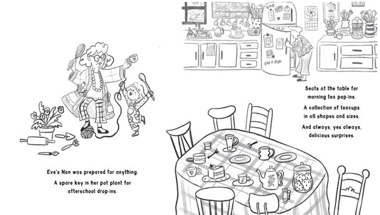 伊芙的奶奶身边,好像永远有 “多余” 的东西:盆栽里藏着备用钥匙,方便伊芙放学后随时进门;餐桌旁总有多余的座位,欢迎突然来访的人喝杯早茶;橱柜里摆着各式各样的茶杯,能满足不同人的喜好;还有永远少不了的美味小惊喜。而其中最珍贵的,便是奶奶那能化解一切烦恼的 “多余的吻”。