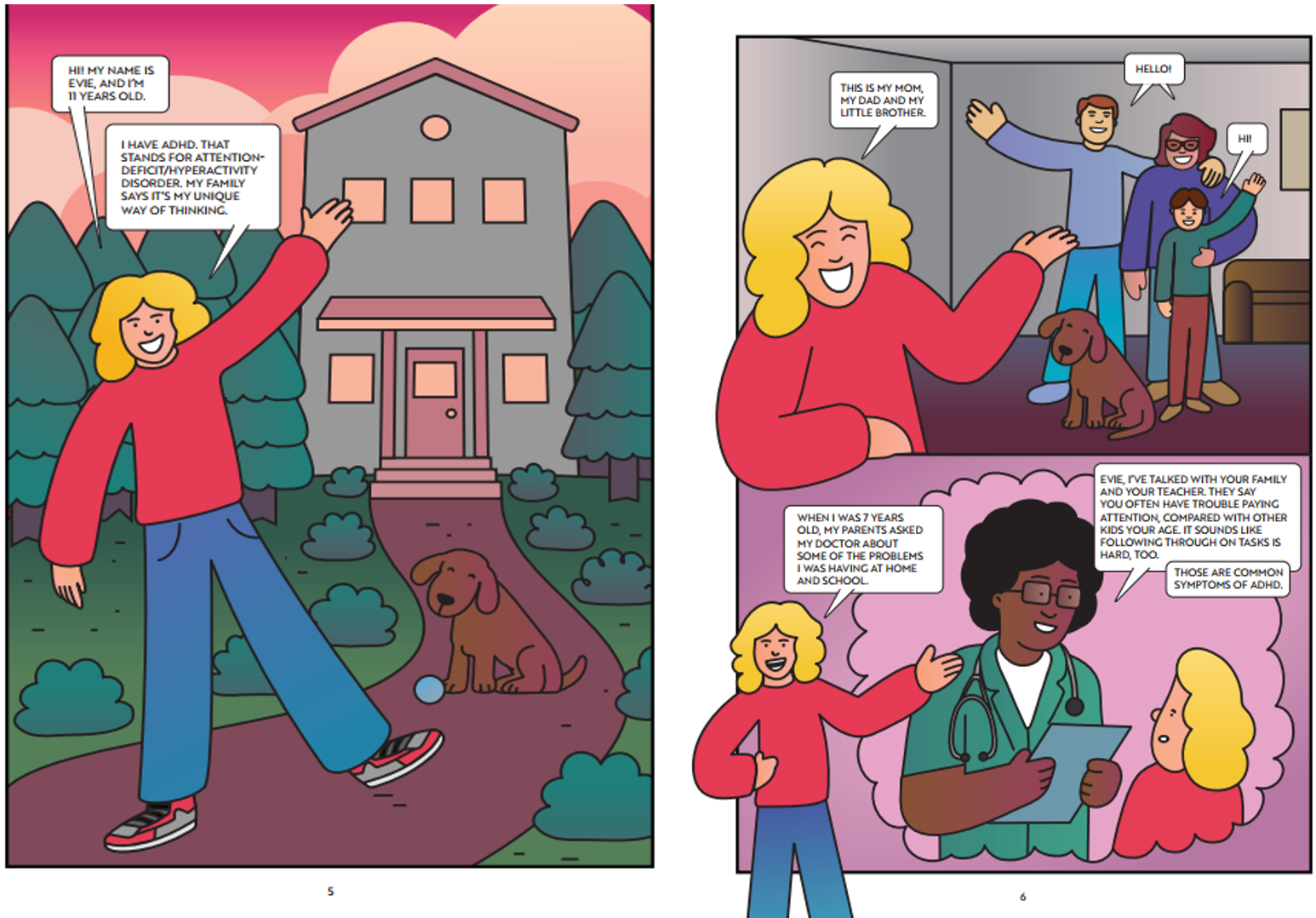 伊薇(Evie)今年11岁,喜欢动物和数学。她还喜欢和朋友一起玩、创造故事、打篮球、看曲棍球和和她的狗格斯一起玩。她与父母、兄弟和狗住在明尼苏达州罗切斯特。自从伊薇在二年级时被诊断出患有多动症以来,她的父母注意到专注于阅读、遵循指示、完成任务,尤其是远程学习对她来说特别具有挑战性,她一直在学习管理她的多动症。她还在学习管理阅读障碍。