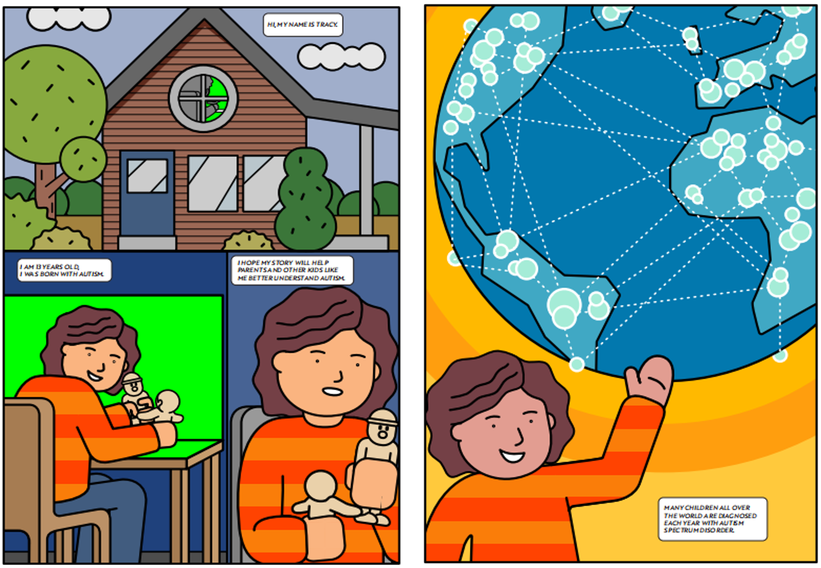 C. 安诺(C. Ano)在两岁时被诊断出患有自闭症。确诊后,他和妈妈每天都会一起玩耍,并参加各种类型的治疗课程,包括职业治疗师、言语治疗师和地板时间治疗师的课程。与护理团队保持密切接触并积极参与其中对他的妈妈来说非常重要,这样就能确保治疗团队中的每位成员都适合安诺,同时也能朝着有利于他成长且不具限制性的目标努力。如今,安诺已经13岁了。他喜欢绘画和发挥创造力,还开始了自己的漫画系列。他最喜欢的作者/插画师是杰夫·金尼(Jeff Kinney)和戴夫·皮尔基(Dave Pilkey)。他还喜欢用他的玩具创作原创电影,并创作了一个独幕剧。安诺是一位才华横溢的演讲者,他渴望成为一名电影导演或作家/插画师。他与父母、弟弟以及两只狗一起住在明尼苏达州。