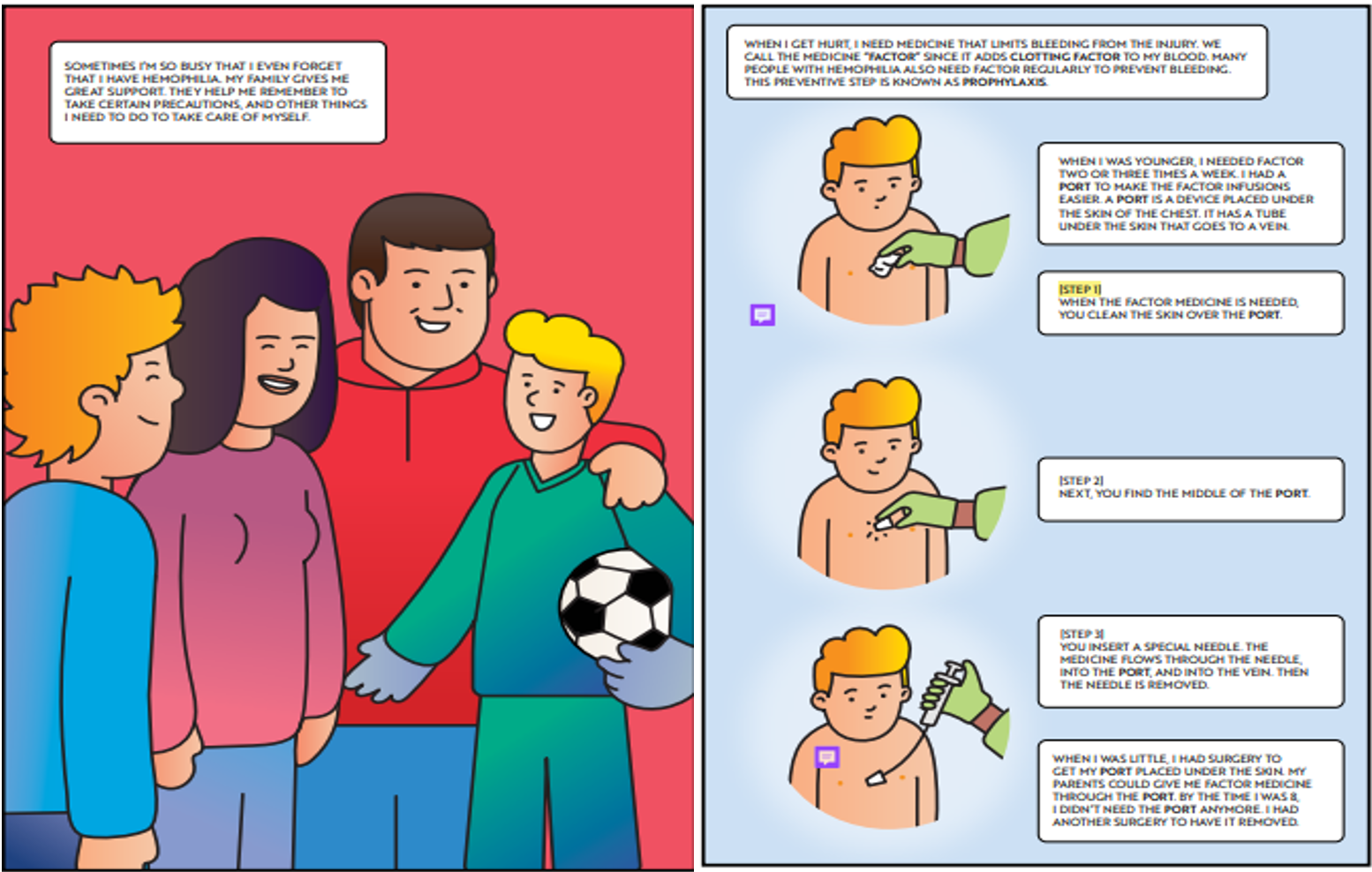 作家兼插画家海·吉(Hey Gee)为一位患有血友病的足球明星的生活片段绘制了生动的插画。该书是与一位真实的妙佑诊所患者合作创作的,它展示了如何通过有效管理血友病来维持高强度的训练,同时解释了预防严重出血所需的治疗和注意事项。