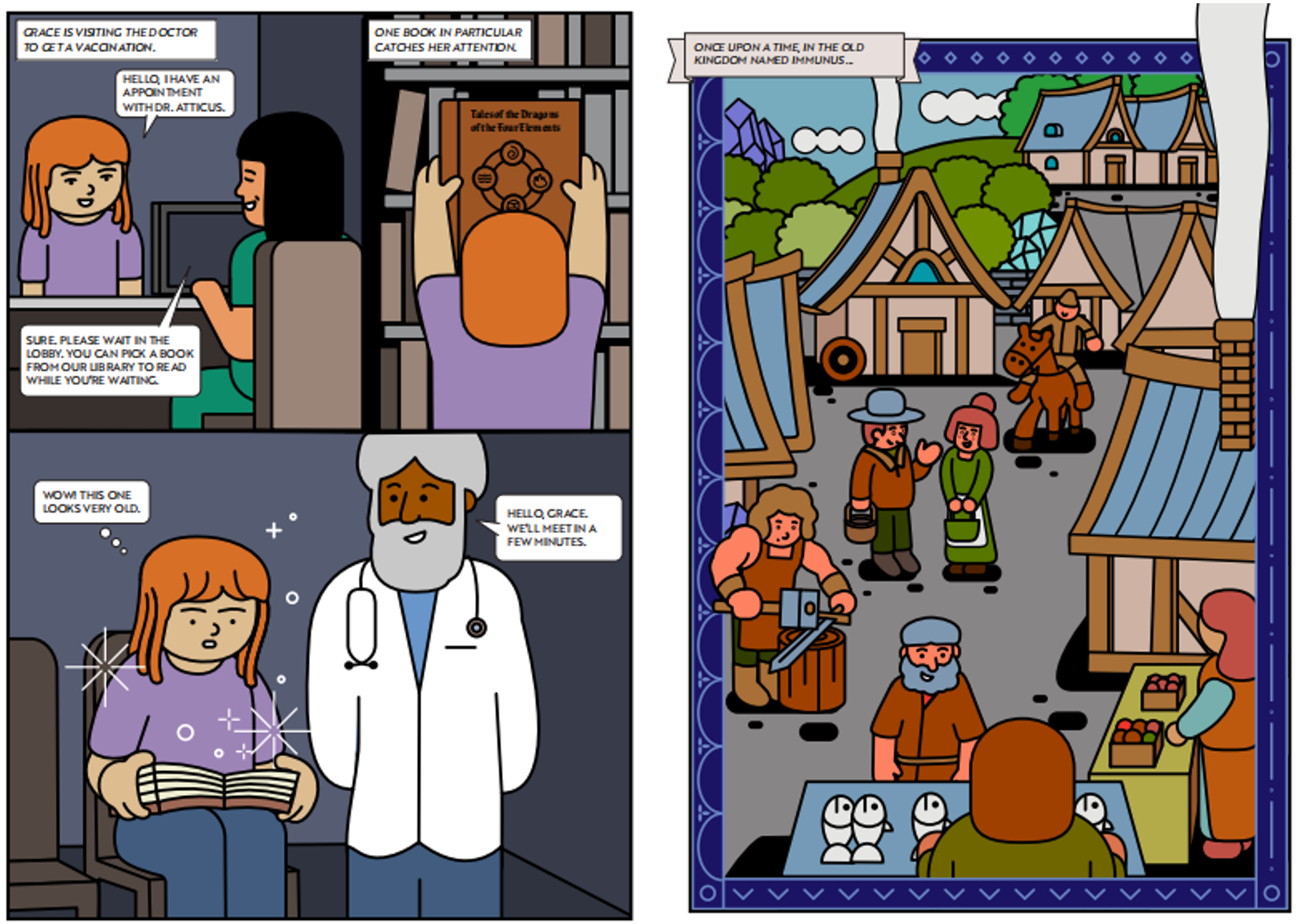 一部虚构的漫画小说冒险故事,以孩子的视角讲述了接种疫苗的经历。