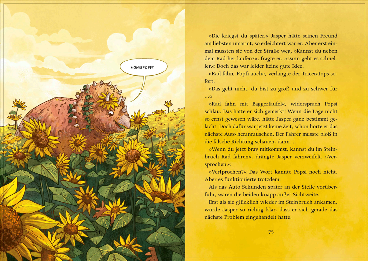 MOMO插画家西莫娜·切卡雷利与安吉丽卡·尼斯特拉特携手创作了这部精彩的奇幻故事。故事讲述贾斯珀在某个夜晚寄宿在姑姑和姑父家时,发现了一只三角龙。当刻薄的表妹艾玛(Emma)以及爱打听的大人们逐渐察觉到这一切时,贾斯珀必须想办法把波普西送回它该去的地方——但波普西最初是如何来到贾斯珀身边的呢?这个谜团必须尽快解开,因为直升机正在盘旋,大人们也试图捕捉波普西。这是一个在拍卖中售出的两册系列中的第一册。