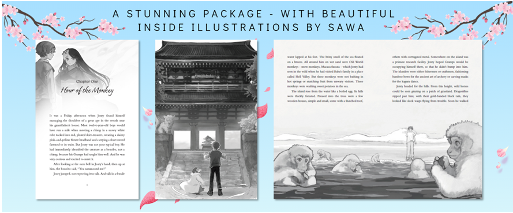 十二岁的乔蒂(Jonty)渴望冒险,却被迫在家度过整个夏天。随后他遇见了一只会说话的倭黑猩猩(bonobo),并被邀请穿过一扇与日本记忆相连的魔法之门。那里,他将收集那些源自祖父——一位著名灵长类动物学家的时代中的狂野记忆……就此,他的冒险开始了。门之后是一个充满调皮捣蛋的日本妖怪(yōkai)的世界,乔蒂必须面对一连串令人毛骨悚然的试炼。此外,还有一支邪恶的天际海盗团,他们誓要永远销毁这些记忆……而且他们带着弓箭。
