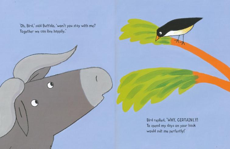 森林里的水牛最近有一个困扰——它老是觉得身上很痒,自己又挠不到。于是她开始寻找森林里的其他伙伴的帮助。